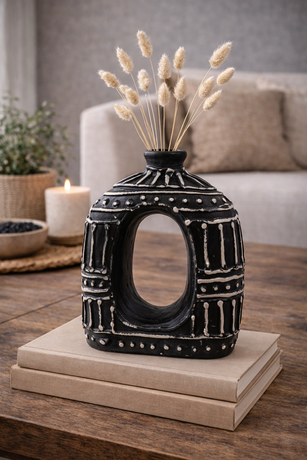 This chocolate donut shaped vase strikes the balance between statement design and everyday versatility. Handcrafted by skilled artisans in Lombok, it blends traditional ceramic techniques with a bold, modern silhouette that stands out without overpowering your space.