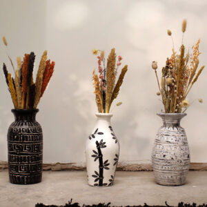This striking ceramic vase, expertly handcrafted on the beautiful island of Lombok, showcases the perfect blend of traditional artistry and modern design. Its distinctive straight shape and generous size make it a stunning centerpiece that naturally draws the eye.