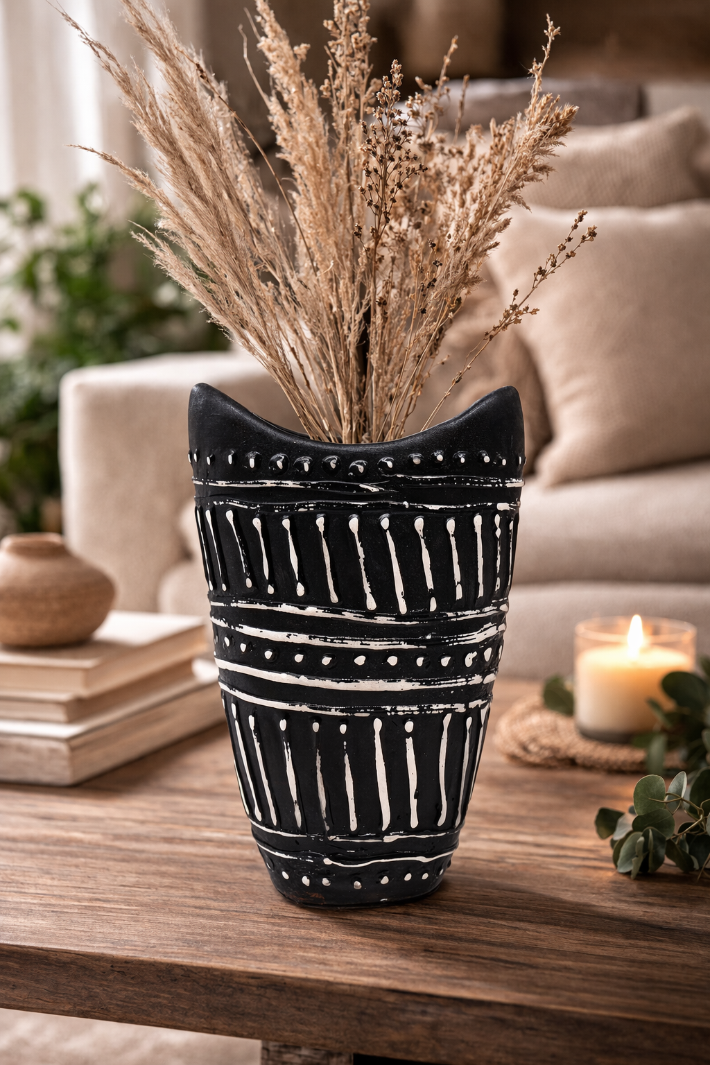 If you want something that actually stands out on a shelf or table, this is it. The Chocolate Wide Neck Vase combines a bold, sculptural shape with traditional craftsmanship, making it a proper statement piece rather than just another accessory.