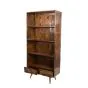 Solid mango wood 85cm bookcase with open shelving and geometric drawers—practical storage with a strong, modern look.