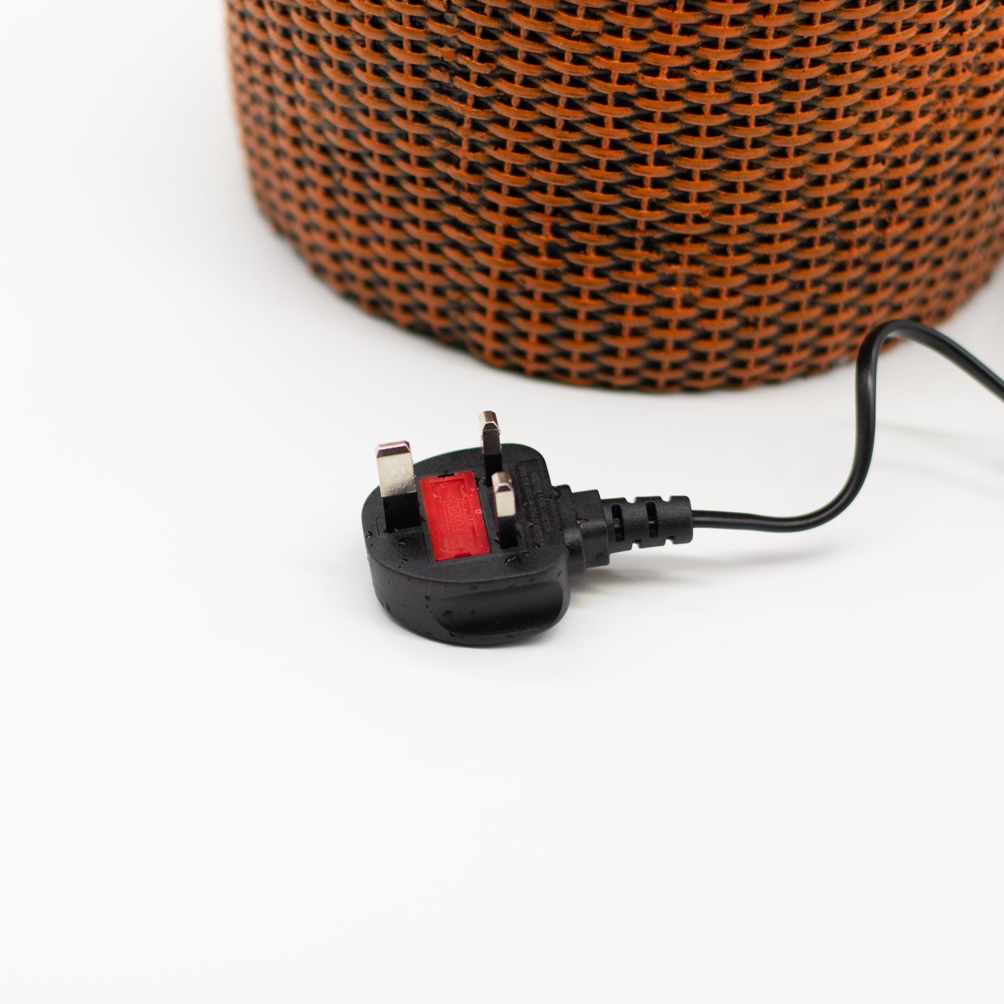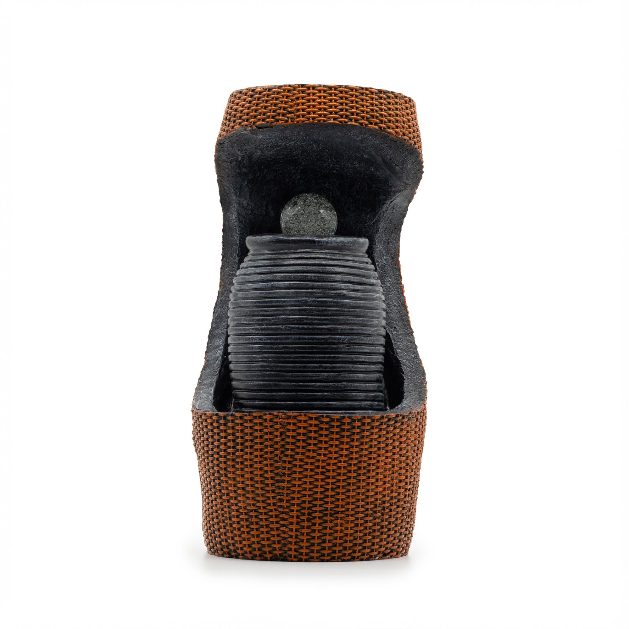 A striking Greek urn-inspired indoor water feature with flowing water and a colour-changing crystal ball, set within a woven basket surround for a calming, contemporary statement.