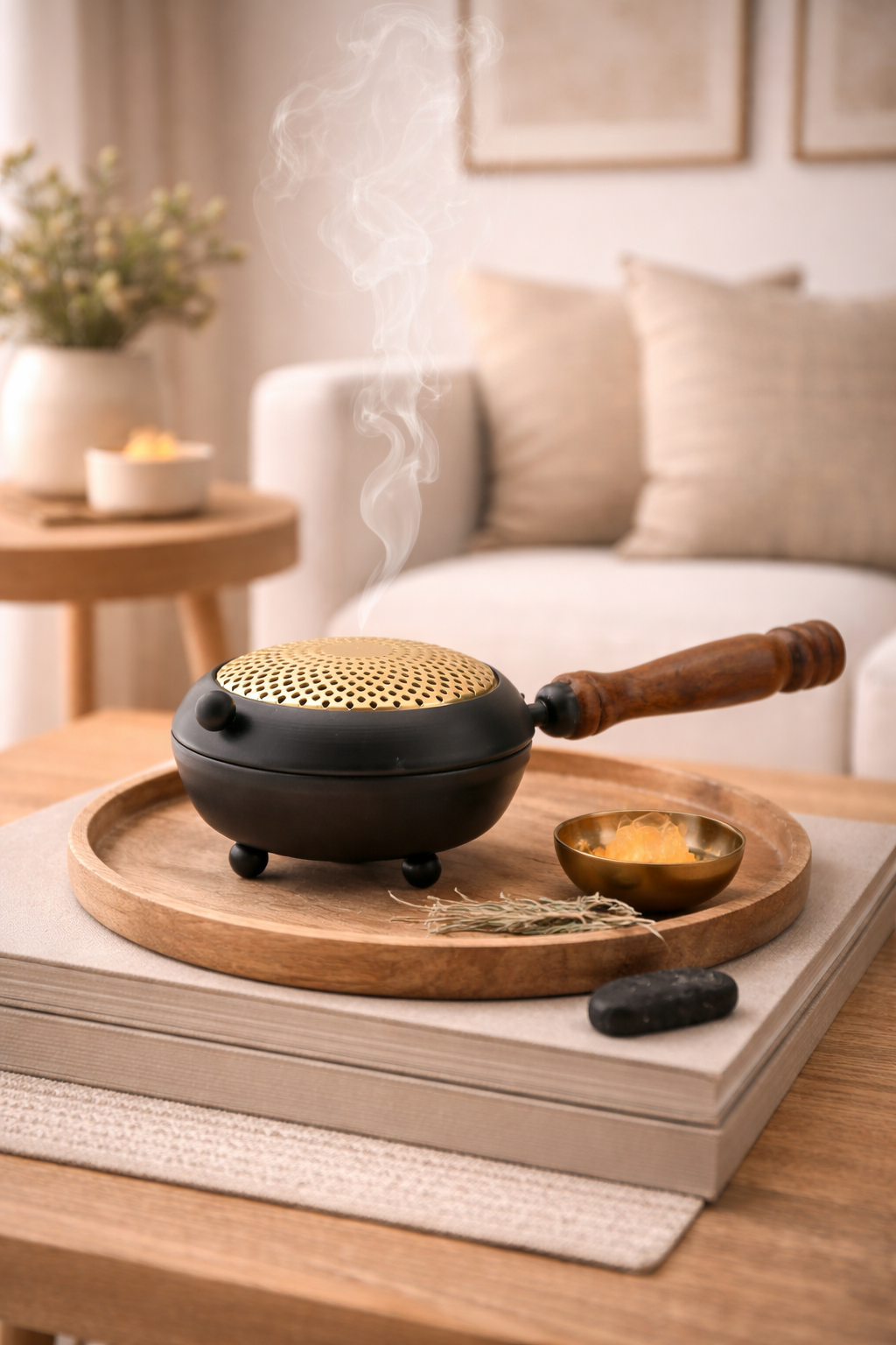 Large iron censer incense burner with vented lid. Designed for resin, cone, and charcoal incense—ideal for meditation, rituals, and home fragrance.