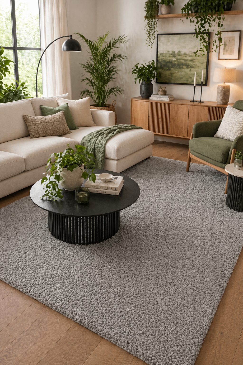 Finished in a versatile silver-grey tone, it blends easily into both modern and traditional interiors, adding warmth without overpowering the room. Whether paired with neutral décor or used to soften bold interiors, this rug provides a balanced, easy-to-style foundation.