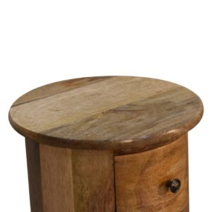 Its unique circular shape makes it a standout piece that works effortlessly as a bedside table, end table, or occasional accent table. The flat top provides the ideal surface for displaying photos, ornaments, candles, or treasured collectibles, making it as decorative as it is practical.