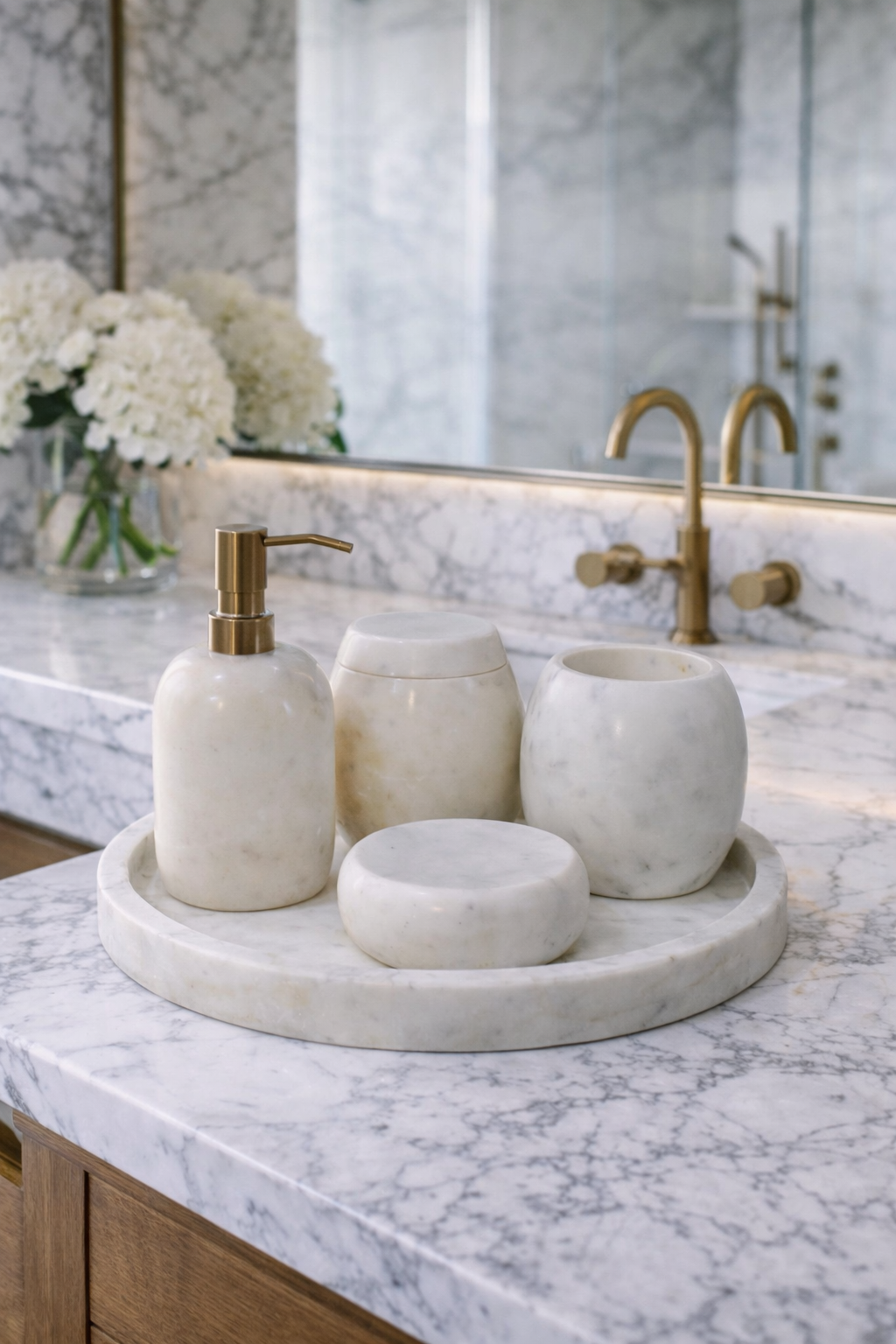 White Marble Bathroom Accessory Set with Soap Dispenser – 5 Piece